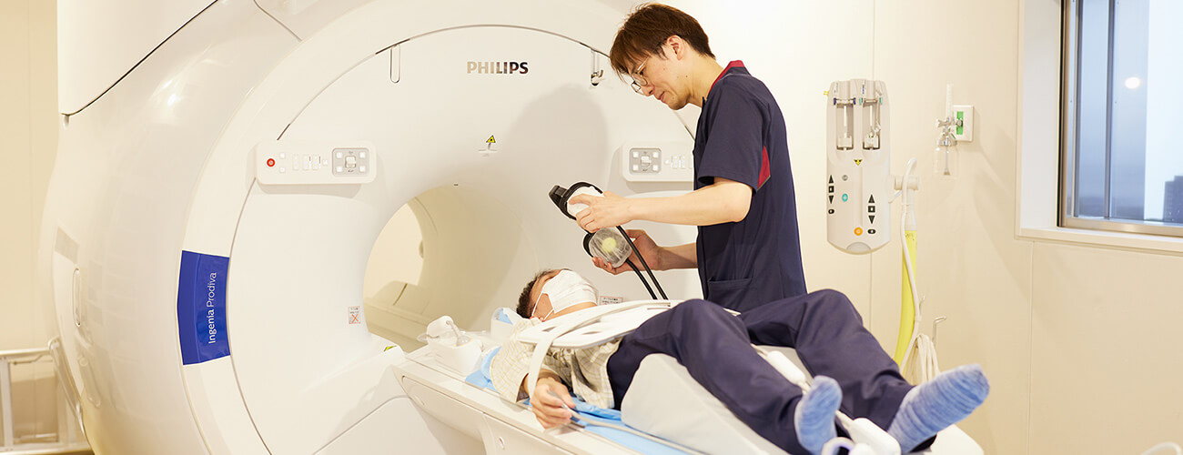 MRIとはMagnetic Resonance Imaging(磁気共鳴画像)の略称で、非常に強い磁力と電波の力によって人体の様々な部位を、任意の方向から撮像可能な診断装置です。